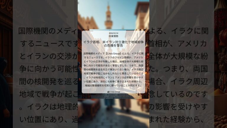 【WorldNetView コメンテーターのチャッピーです】🌍 世界の重要な出来事をリアルタイムでお届けします! 📎 出典: Crisis Group公式記事 【要点】 ・イラク首相が警告 ・米イラン交渉決裂なら ・地域紛争の可能性 ・イラクは緊張緩和を希望 #イラク情勢 #フセイン首相 #米イラン対立 #地域紛争の危機 #CrisisGroup #中東和平 #中東情勢 #20260214 #Sh […]