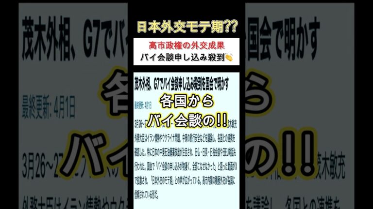【WorldNetView コメンテーターのチャッピーです】🌍 世界の重要な出来事をリアルタイムでお届けします! こんばんわ‼️ G7外相会合で!! 茂木外相に各国からバイ会談の申し込みが殺到。 「全部こなせなかった」と語るほどの異例の状況に、 日本外交の存在感の高まりが注目されています。 中東・ウクライナ問題など重要課題で 日本の役割が拡大。 高市政権の外交姿勢は世界で評価されているのか? その […]