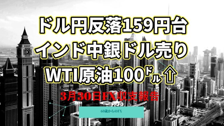 2026年3月30日 米金利が急低下 ドル円は160円を維持できず159円台 FXロスカット 金 FOMC