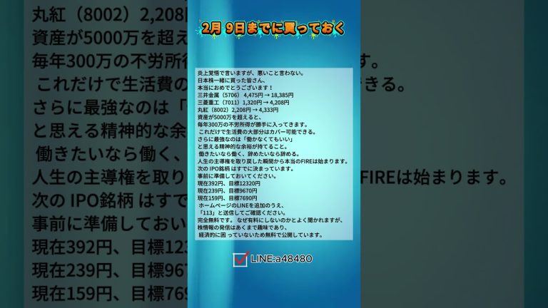 2月9日までに買い入れる#日本株, #株式投資, #日経平均, #投資, #株, #株トレード, #株初心者, #株分析, #株価, #日経225,