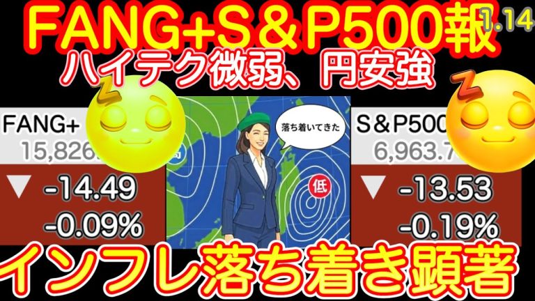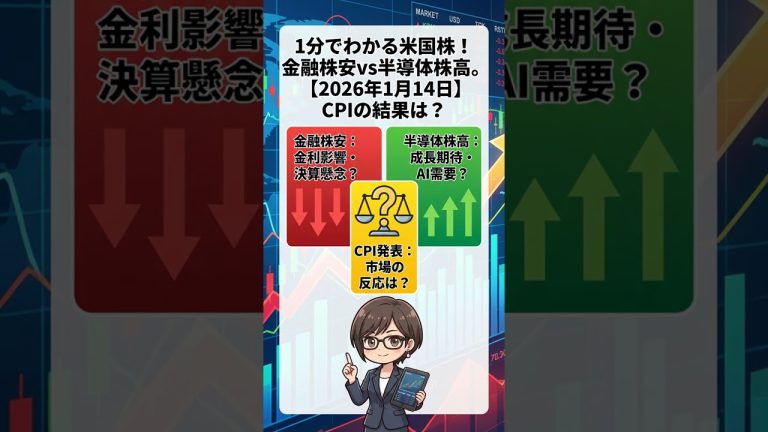 1分でわかる米国株!金融株安vs半導体株高。CPIの結果は?【2026年1月14日】